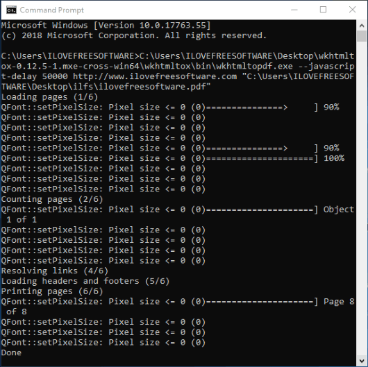So, your command should be something like this: wkhtmltopdf.exe --javascript-delay 1000 https://www.ilovefreesoftware.com outputfolderpath\ilovefreesoftware.pdf.