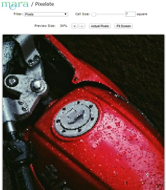 Mara Pixelate by Mara Tools is a dedicate online photo pixelizer. Here, you can pixelate whole photo in a go. All you need to do is load a photo, and select pixel block size to apply effect. The pixel block size can be varied from 2 to 381. You can download processed photo as JPEG, PNG, or WEBP. For JPG and WEBP, you get option to set image quality.