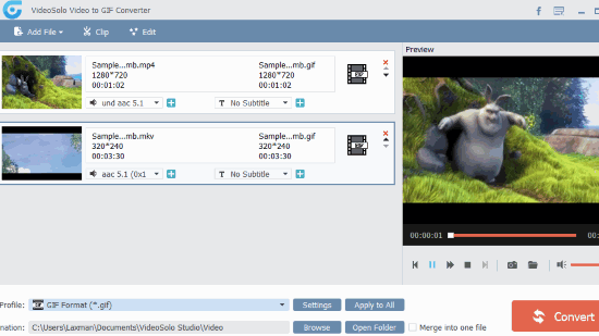 VideoSolo Video to GIF Converter (Homepage) is also a fantastic MKV to GIF converter software. The software has a direct competition with Aiseesoft Video to GIF Converter. It is so because the features are almost same. You can batch convert MKV files to animated GIF files. You can also play any of the added video.