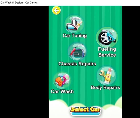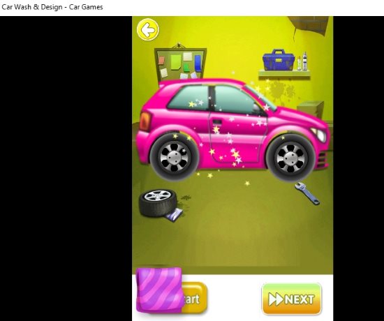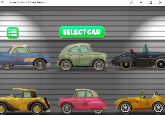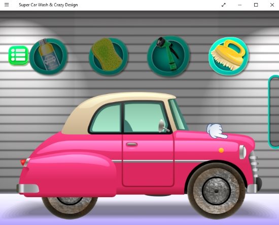 Car Wash & Design is a fun car wash game app for Windows 10. When you start this game you have to select a car to work with. The above screenshot shows the different car categories you can select from. After you select the car the car is ready to enter the car salon. Press the start button to start the game. Inside the car salon you will get various option for your car as displayed in the screenshot below.