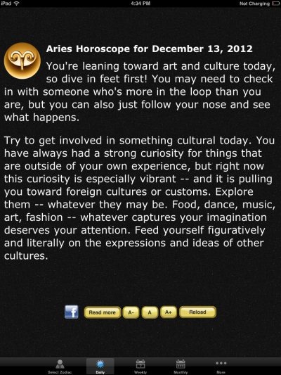 Full Horoscope is a free iPad app to view daily horoscopes on iPad. This iPad horoscope app is a good app which tells you horoscopes on daily, weekly, and monthly basis.