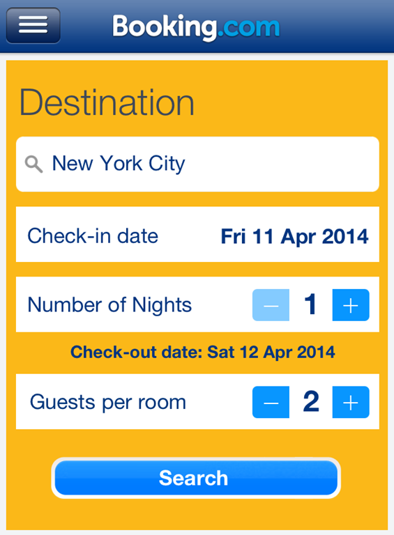 The second hotel finder app for you is Hotels.com. This app is from the World’s most famous hotel finder website Hotels.com. You can use the app either as guest or as a registered user. This app lets you search for hotels by providing the dates for booking and number of adults/children for which booking is required. The one extra feature of the app is that it lets you specify specific rooms for individual persons. You can add as many rooms as you want. You can also check reviews, facilities provided, policies, fees etc. for each of the hotel.