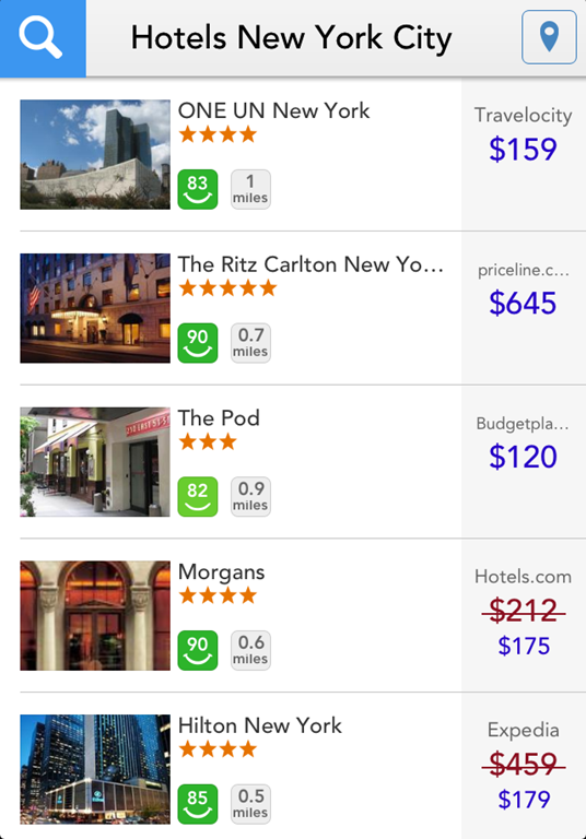 The first hotel finder app or iPhone in the list is Trivago. This app is a hotel cum deal finder app. You can search for the hotels by specifying various criteria like dates for booking, your budget, customer reviews etc. The app even lets you to choose the currency in which you want to see the booking charge. The app displays the best deals related with each hotel so that you don’t end up paying more. The best thing is, this app doesn’t require any registration from you.