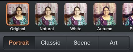 Next comes effects which includes four categories namely, portrait, classic, scene and art. All of these categories contain various awesome effects that can be applied to your photos. Some of the common ones that you will find are natural, white, autumn, vintage, blues, etc.