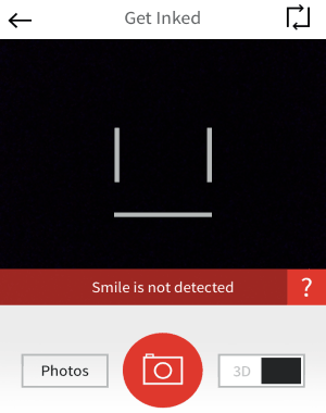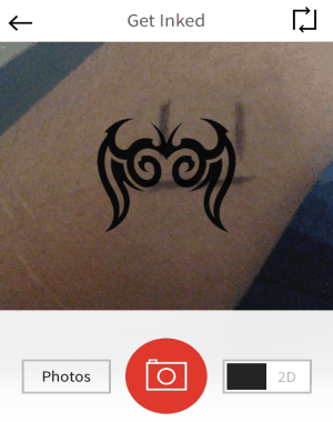 Step 3: To see how a tattoo looks on you, the first thing you need to do is draw a square smile on your body with pen or marker. After that, choose any of the pre-defined designs or imported designs to proceed. When you tap on a design, the built-in camera will appear with the capture button and an option to toggle 2D and 3D view.