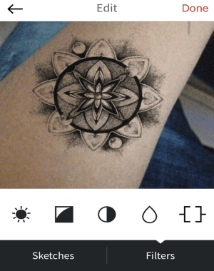 Step 4: Once, you place the design perfectly on your body, simply click the red round button to capture a photo. After that, the editor will open up where you can change the tattoo design, move the design, and apply various filters like lightness, opacity, contrast, blur, and skin crop.