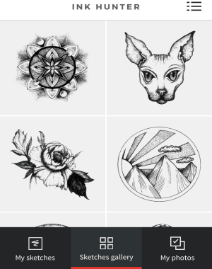 Step 1: When you open the app, you will see 3 different tabs named, My Sketches, Sketches Gallery, and My Photos. In the “Sketches Gallery” tab, there will be some pre-defined tattoo designs which you can use to try on your body.