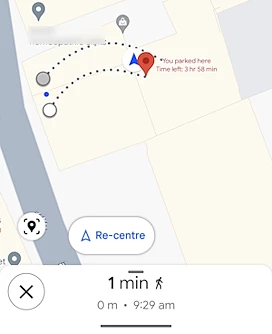 Once you save the parking location, it gets marked on the map. You can just open the map and check the parking location. If you have added time to it then it shows the remaining time on the map as well.