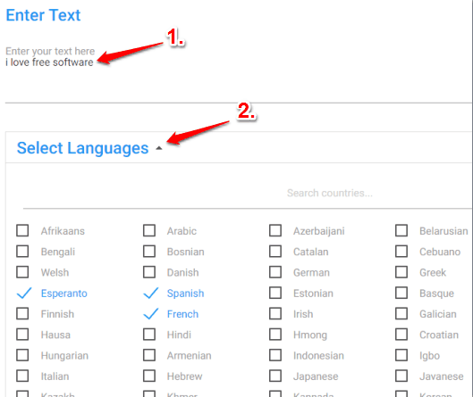 This free text translator website lets you enter a line or paragraph and select languages to generate the output. The website actually uses Google Translate API, but handy when we need to translate a word or sentence to multiple other languages. You can translate text written in English or in any other language to French, Spanish, Russian, Swedish, Polish, Japanese, etc.