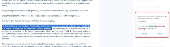 Paperpal is a free AI-based intelligent writing assistant that understands the academic context of your writing, identifies language and grammar errors, and automatically recommends improvements helping you to refine your writing in just a few minutes. The AI of Paperpal has been trained on millions of manuscripts and this ensures that users get accurate and relevant suggestions almost on par with those by human editors.