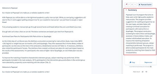 Paperpal helps you to write faster and better with quick real-time suggestions including language, grammar, vocabulary and more. The Copilot feature provides you with rich tools that enable you to Paraphrase or Trim the content as well as help you to follow an academic tone for your manuscripts.
