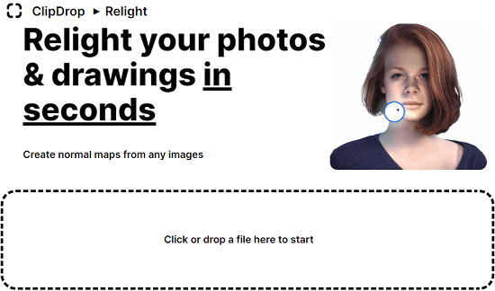 ClipDrop offers some sample portraits on which you can test out this relight web app. Or, you are free to upload your own photos and then use the relight tool on them. There are 4 modes and it generates instant preview of the final relight effect there in the browser.