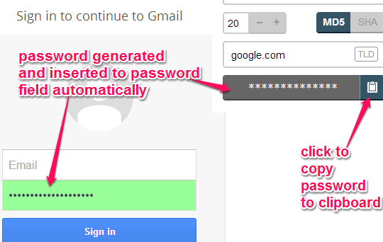 Another valuable feature provided by this free password generator bookmarklet is that you don’t have to enter your original password in password field to login to your particular account. Generated password is automatically inserted in password field for you. And as this is a bookmarklet, so you can use it from any location and computer. All you require is this bookmarklet.