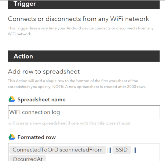 That’s it! Now whenever you will connect with a WiFi network, the recipe will trigger, and record the action in the Google sheet.