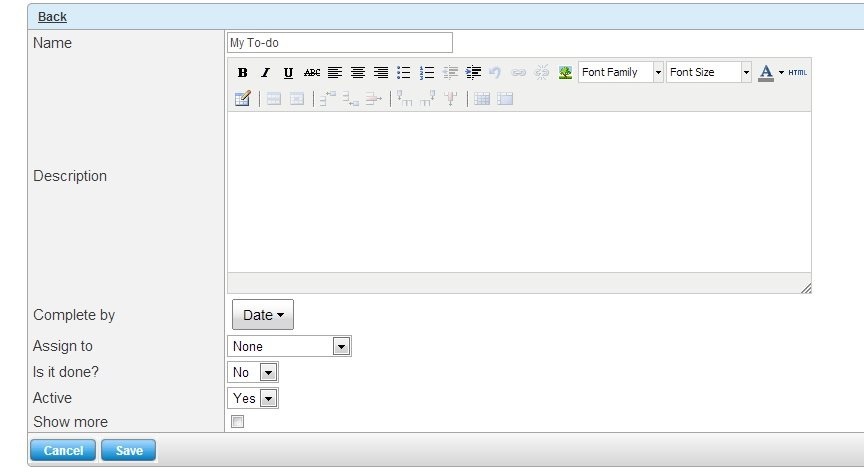To begin with, you can click on the To-Dos option where you can set all the parameters regarding your project. You can select the name of the project, add description and set dates as to when you want to start the project and by when do you want it completed etc. After that you can save it and it will be visible to other members of the team, once you have added them.