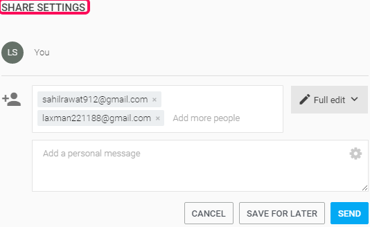 Step 4: When you have set up everything, you can use SHARE button, and invite the collaborators or contractors. You can also set permission for every single contractor.
