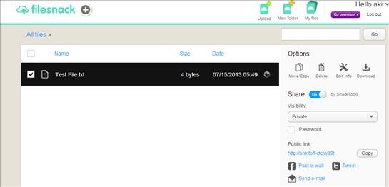 FileSnack is a free online file sharing app. You can simply go to the website homepage and upload files that you want to share. The files that you will upload will be available to share immediately through a quick short link. You can then share this link with people you want to share the file with and they will be able to download after clicking on the link.
