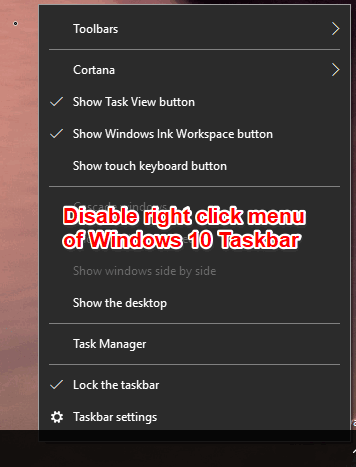 Method 2: How To Disable Right Click Menu of Taskbar In Home Edition or Any Other Edition of Windows 10