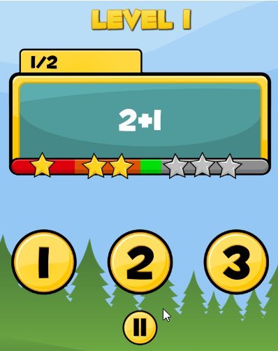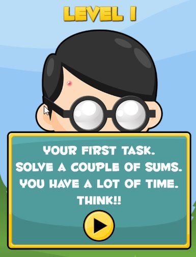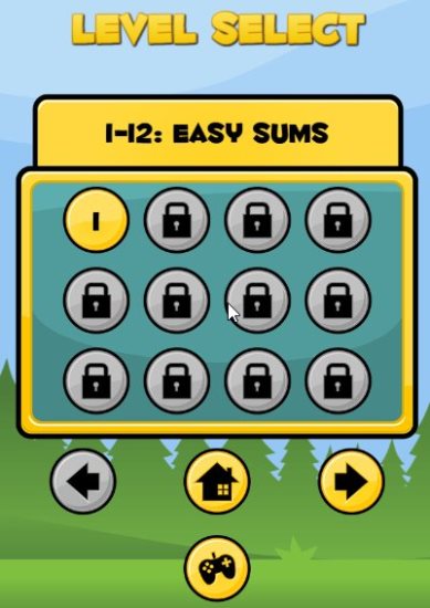 The level up screen can be seen above. The forward arrow button takes you to the next level. The games in each level have multiple questions and all the questions are timed. If you don’t answer it before the timer runs out then you lose the level and have to replay the level.