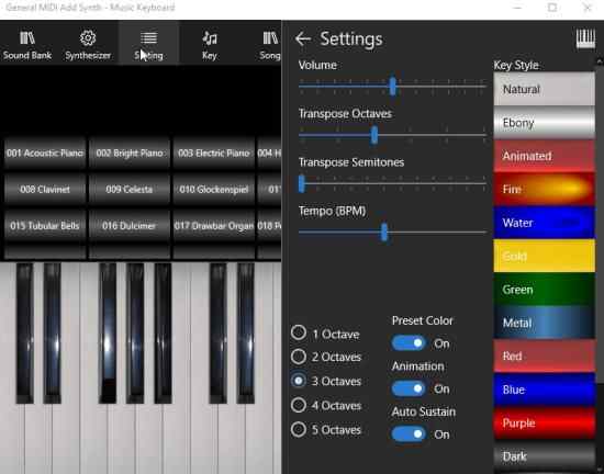 Features of this Windows 10 music keyboard app:
