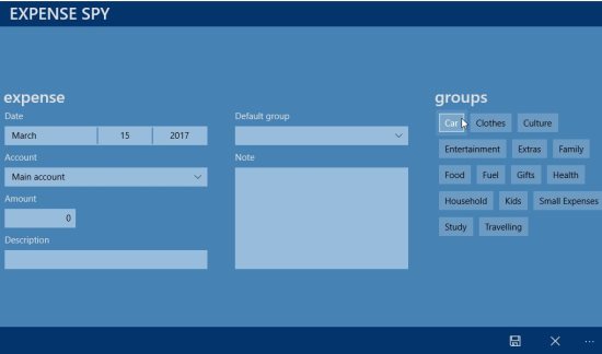 Expense Spy is a Windows 10 personal finance tracker app where you can track your monthly expenses, income, add groups for expenses, set a monthly budget, etc. The app has lots of great features to help you keep your personal finances up to date. You can even back up your data to your OneDrive account and even password protect the app.