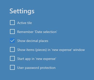 From here you can choose to show decimals, make sure that the app remembers the date you selected last time, always start the app in new expense mode, the app also lets you add a password to protect your data.