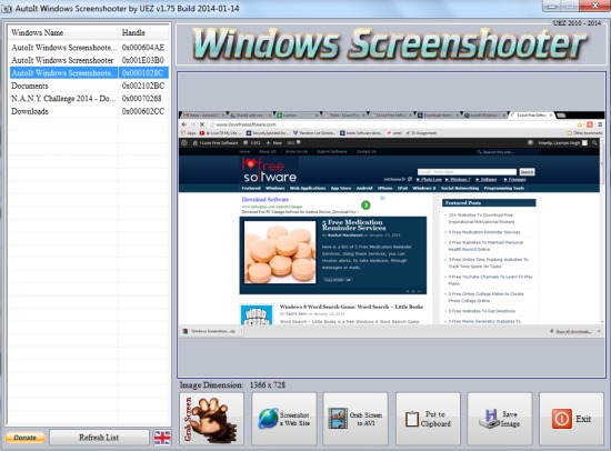 - You can even quickly capture any opened window. Its interface shows the list of all the opened windows of your PC at left side. If you want to capture any of those windows, you can either left-click on any window, or can double-click with right mouse button. That particular window’s preview will be available at the right part on its interface. After that, you can use Save button to save that window’s screenshot to destination location of your choice.