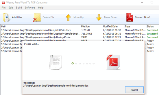 Weeny Free Word To PDF Converter is another fantastic software to bulk convert Word to PDF. Both DOC and DOCX formats are supported together for the conversion process, which is not possible in above mentioned software.
