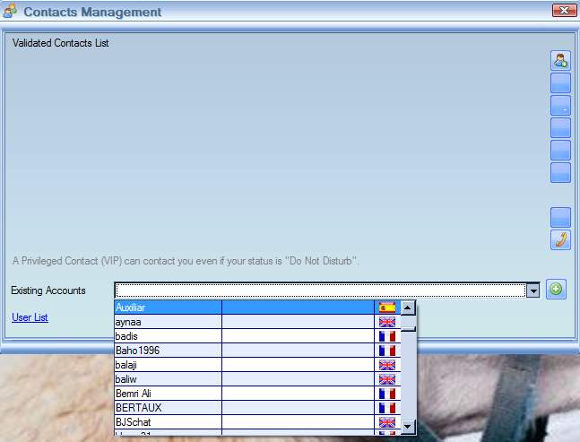 Server that you see in the URL field above is the test server of THEDUS, company that created IntraMessenger. Since this is a test server and it’s URL location is publicly known, it’s not technically the true display of what IntraMessenger is all about, privacy. Upon signing in, you are asked to add contacts to your contact list, same way that you would add contact to Skype free instant messaging application.