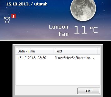 If you want to setup a reminder for example, then you’re gonna have to click on the red zero which is available just above the alarm clock. After you do that, another pop up will appear where you can set the reminder name, and also the time and date when you want to see it activated.