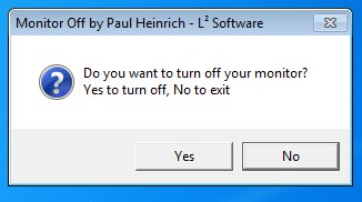 The only thing that you’re gonna see from Monitor Off is this dialog box which comes up after clicking on the executable. Clicking on Yes will turn off your display and clicking on No cancels the entire process. There’s no menus, settings or any thing like that to tweak when it comes to using Monitor Off.