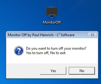 After downloading the archive and extracting it of course, to turn off the monitor you just need to click on the application. That’s gonna activate the Do you want to turn off your monitor dialog. The only thing that you need to do now is click on Yes and your monitor is gonna switch off.