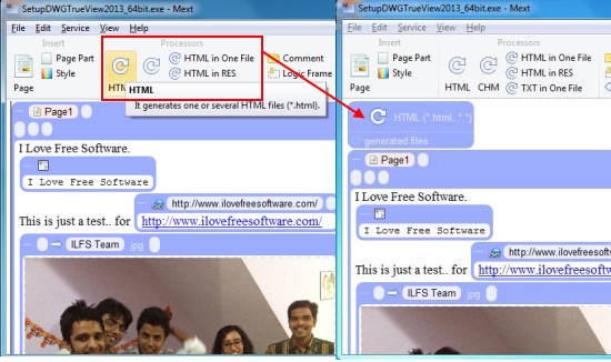 Mext is a nice free text editor software (not WYSIWYG) that lets you write plain text files and provides easy to use tools to create HTML pages and help files for programs written in HTML and CHM. It’s quite a nice app to try, however there are certain things which I found incontinent. Like it would have been better if the developer had provided more help on explaining the features and functionality of the app. Since at some point of time during my testing, I got some errors, which I was not able to rectify properly. In short I can say, this is not an app for novice users, but for technically sound people.