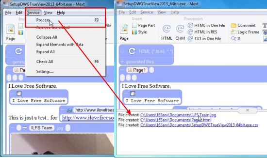Mext is a free text editor that lets you create webpages and help files for your projects. It’s a handy and lightweight software that provides quick insert elements, which represents some textual descriptions and lets you quickly develop web pages and project pages with full ease. Some of these elements include document page, part page, text styles, comments, logic frames, decision blocks, languages, file connections, and conditions. Mext can create HTML page, CHM page, resource files containing HTML pages, and plain text files.
