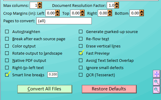Step 4: This step is optional as here you will find options that are optimized automatically after selecting a conversion mode. Still, if you want, you can enable/disable any option according to your requirement. Options such as: rotate PDF pages to landscape mode, set top/right/left/bottom margins for pages, avoid text select overlap, create Black n White or color output etc. can be set by you.