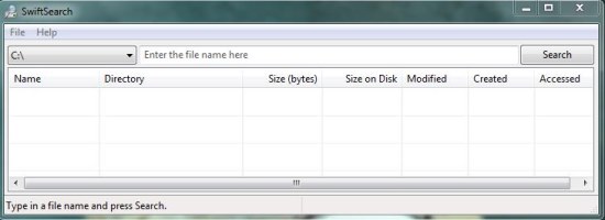 SwiftSearch comes with a simple user interface. You can see a drop-down at top left corner of the program window from where you can choose which drive you want to scan for file search. Next, just enter the name or path of the file or folder you want to look for. SwiftSearch will immediately begin scanning the chosen disk and produce instant results.