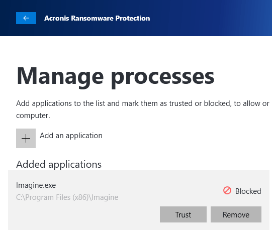 Step 3: The other feature of the software is to block some suspicious processes. You can specify a program in the software and it lets you either add that in the trusted programs list or in the blacklist. For that, go to the Manage Processes section and add any program in the list. After that, you can either block it or trust it.