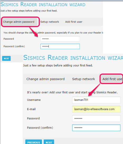 After this, it will open installation wizard that will help you to change the default password of your admin account, and add new user to add subscriptions.