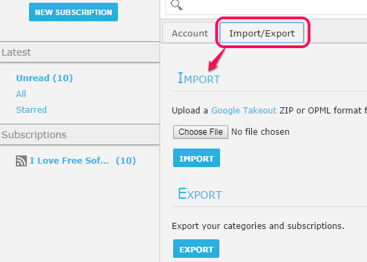 - You can export your subscriptions as a xml file and can import it whenever required.