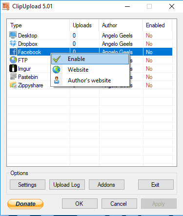 This will enable Facebook option for screenshot upload, but you have to connect your Facebook account with this software.