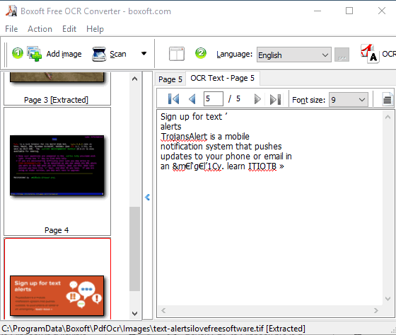 Boxoft Free OCR Converter is also helpful to grab text from images. It didn’t give so good results, but the success ratio to extract text from images was higher than failure. So, it can be helpful when some other software is not able to extract text from the desired photo.