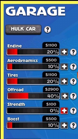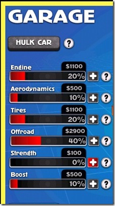 Some of the modifications that you can get done are improve engine, aerodynamics, tires, offroad capabilities, strength, boost. For each of the modification, there is a price. You can use the money that you have won in the game to buy these modifications.