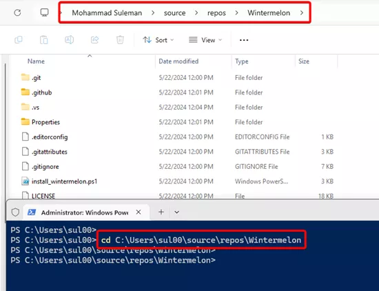 7. Now, run the installation script. Just type this and press enter: ./install_wintermelon.ps1