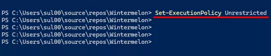 6. In terminal, issue this command: Set-ExecutionPolicy Unrestricted