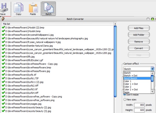 Apart from creating cartoon of a single image, you can batch add images to convert them into cartoon. For this, use Batch button available on top part on its interface. Clicking on that button will open a new window where batch cartoon creation can be done. You can select multiple images from your PC or can add a folder containing images that you want to convert.
