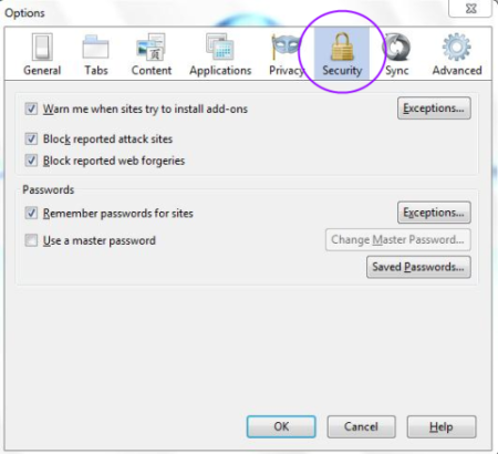 - On clicking Options a window will open up, just click on the “Security” button listed with a lock icon on top of the window.