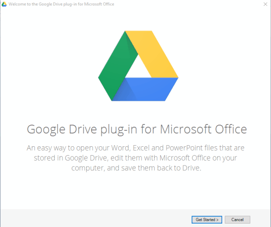 Use this link to download this plugin and then install it. After installation, open MS Word, Excel, or PowerPoint. After this, a welcome window of this plugin will open using which you can connect your Google Drive account.