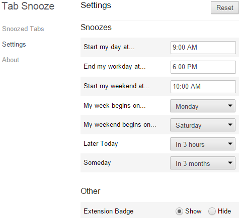 Tab Snooze is a good extension to hide and automatically launch tabs later. Still, I believe that two more options can make it better for its public release. One is to set custom date and time to snooze a tab and other is to open tabs in new tab within the same window.