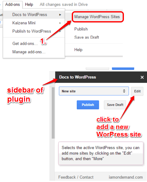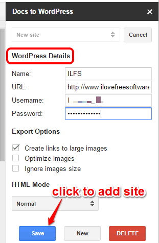 This Google Docs to WordPress plugin lets you add multiple WordPress sites and you can choose any site to post the document. Moreover, you will also be to edit the details of any WordPress site or delete the site.