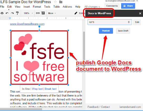 Here is a fantastic plugin for Google Docs, named Docs to WordPress, and its name clearly suggests what it does. Yes, you can publish any of your Google Docs directly to your WordPress site. Apart from this, the content is optimized automatically according to your site. If you don’t want to publish the document immediately, then it also provides an option to save the document as draft in WordPress. And to top it all, you can also update the published content directly from Google Docs. It is really a handy and powerful plugin.